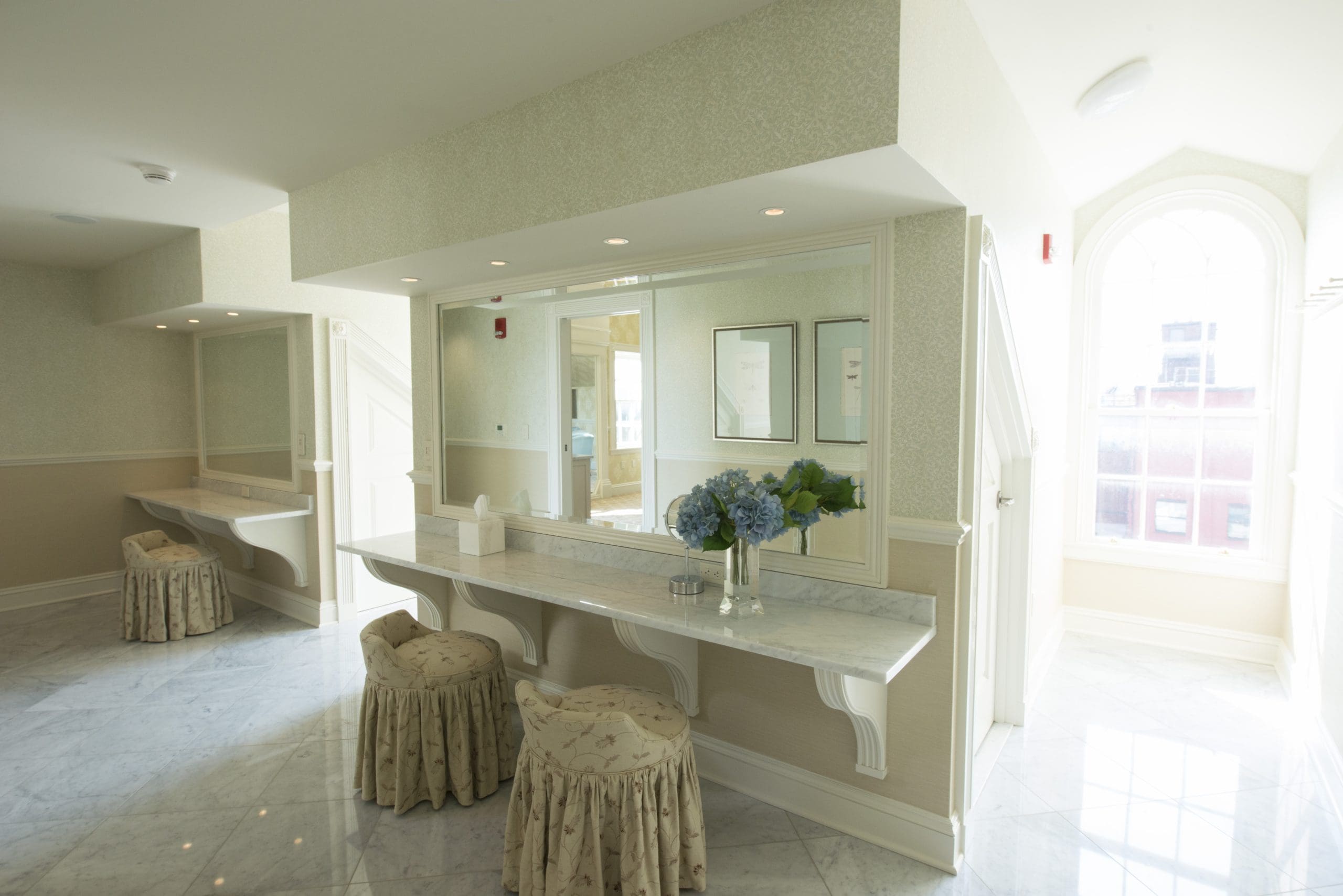 The fourth floor transforms the former attic into a bridal suite with abundant natural lighting, views of historic downtown, accents of polished marble and exquisite finishes. The suite opens onto the main ballroom level in the convention center, providing a unique opportunity to couple the modern wedding and banquet facilities with a beautiful historic interior.